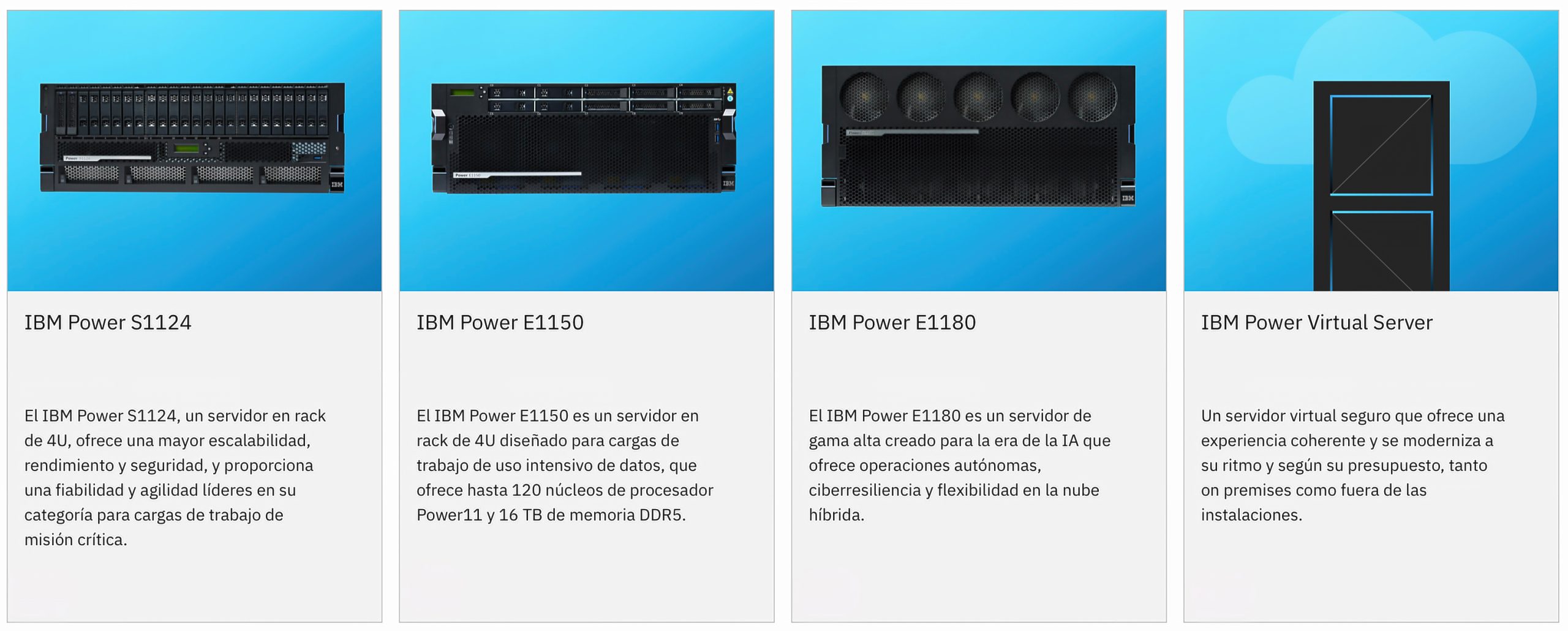 Los servidores IBM Power Systems están diseñados para integrarse con entornos híbridos y soluciones cloud, permitiendo a las empresas evolucionar su infraestructura tecnológica sin renunciar a la estabilidad de una plataforma probada.